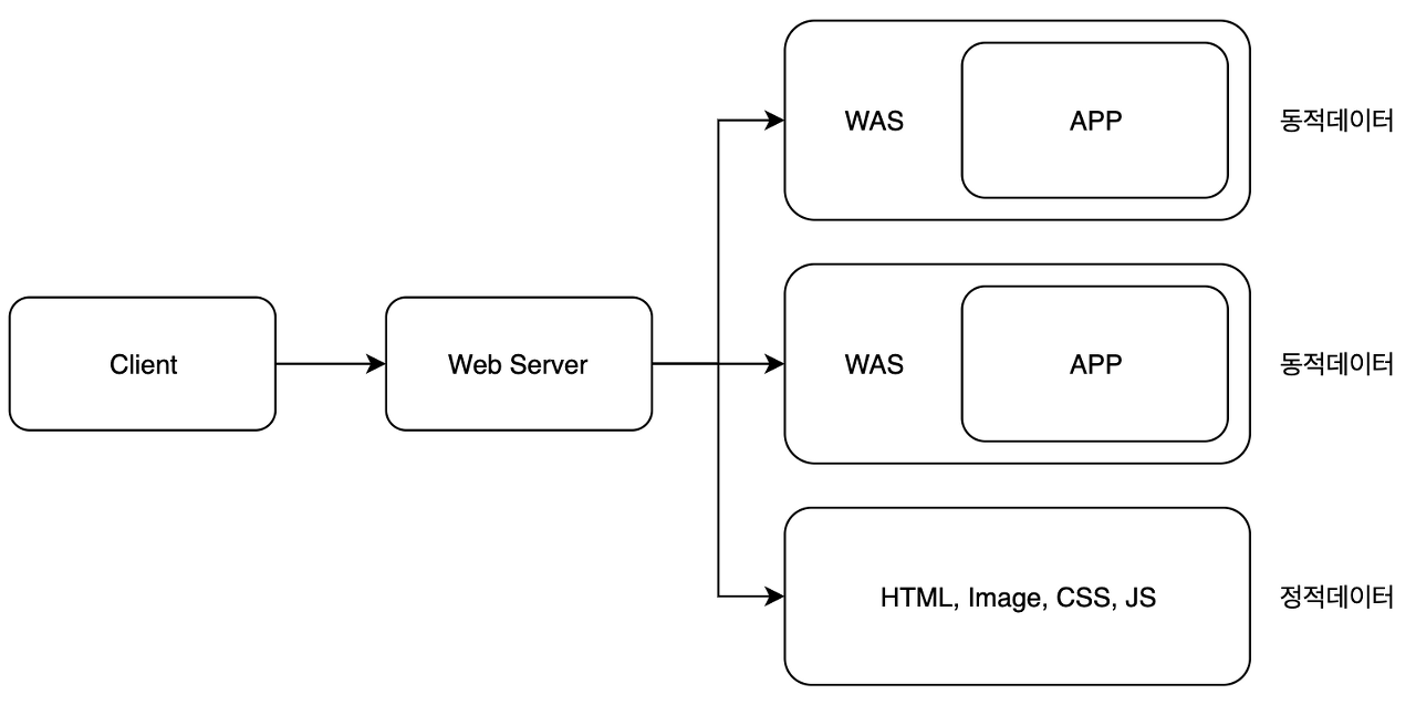 - WAS는 DB 조회, 다양한 로직을 수행하기라 바쁘기 때문에 단순한 정적 컨텐츠는 Web Server에서 빠르게 클라이언트한테 제공하는 것이 좋다.